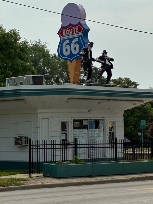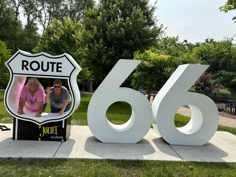 "We got our kicks on Route 66 in Joliet! Hung out with the Blues Brothers, then made some unexpected new friends. We kept running into the same sweet couple at every photo stop — not sure who was following who! 😂 After enough laughs and snapshots, we finally had to take a selfie together. Road trip magic!"