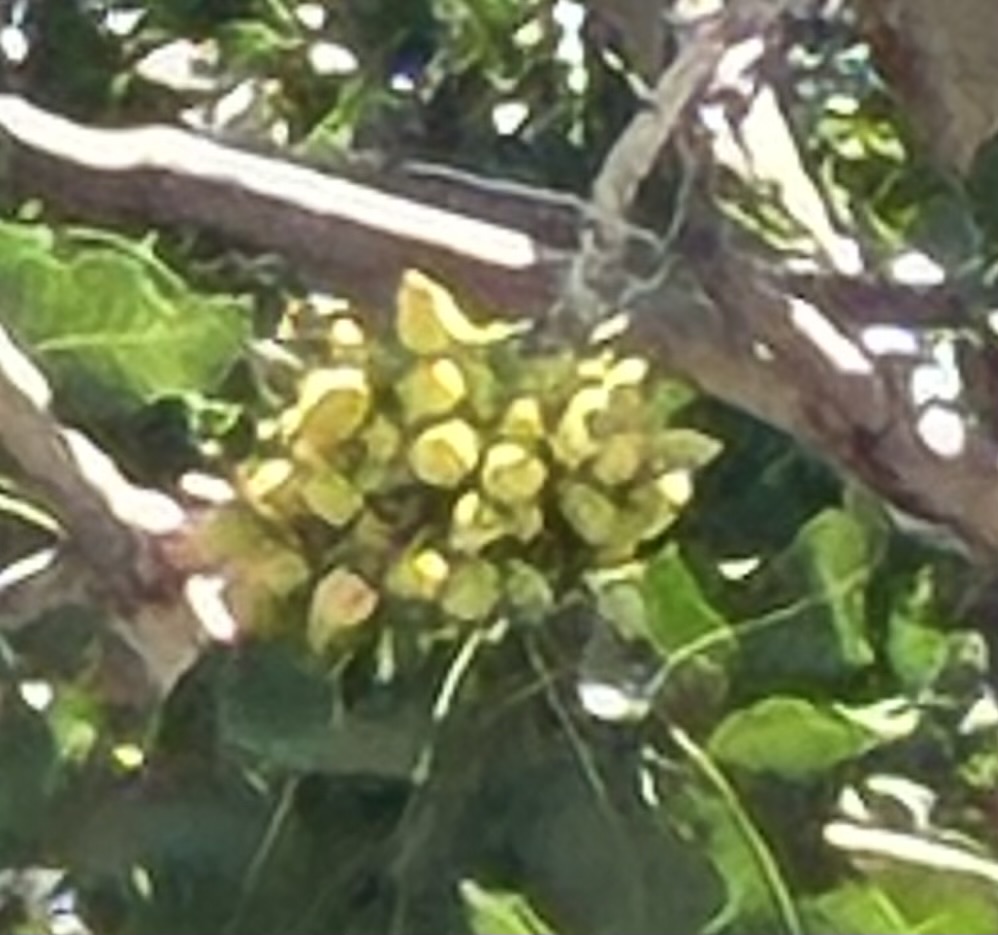 Each female tree is grafted from one of the original trees planted at the farm, keeping the genetics strong and consistent. Pistachios aren’t native to the U.S.—they originally came from dry, hot regions like Iran and Greece—so growing them here required careful work with soil and climate. New Mexico’s arid heat and dry land are perfect for them. And since there aren’t many bees or butterflies around here to help, it’s all up to the wind and those hardworking male trees.
